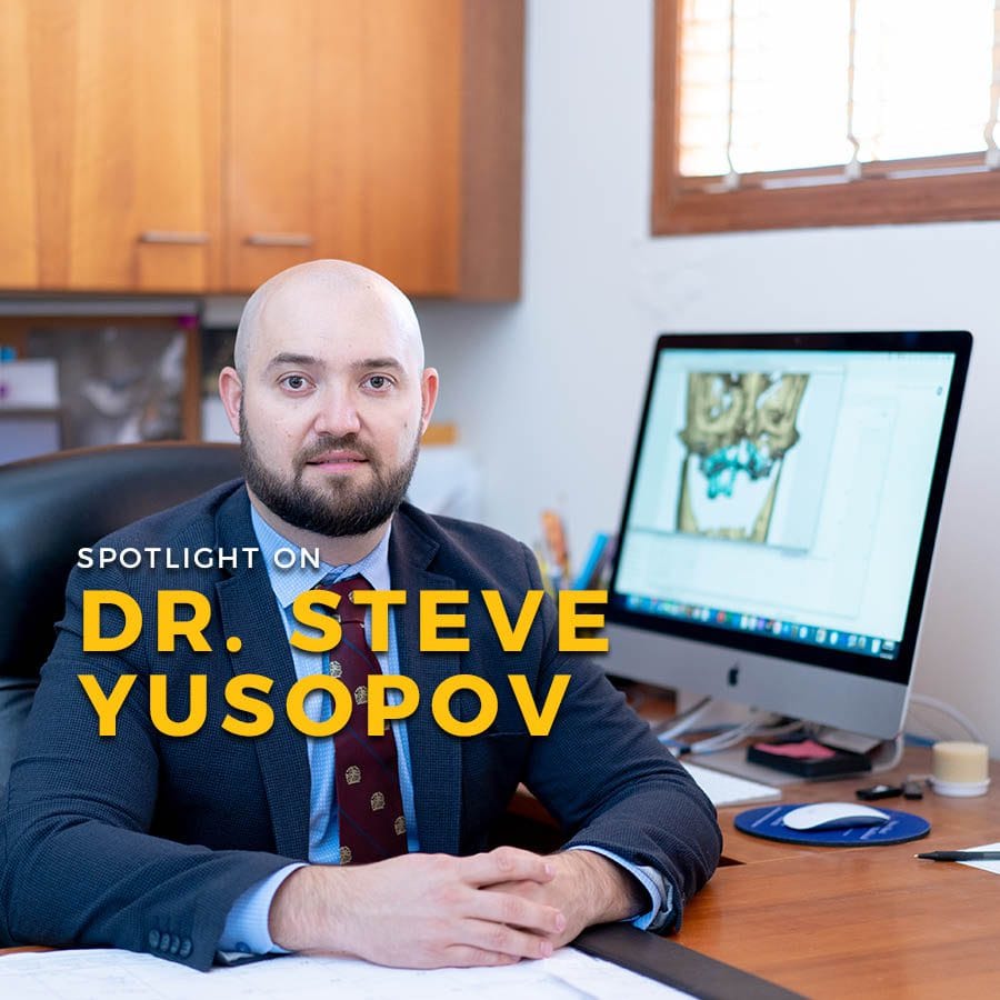 What inspires Dr. Yusopov most is the advances in modern medical procedures and the cross-disciplinary skill set that he can provide. For example, he shared a story with us about a patient who had lost part of their jaw. 10 years ago that person would have lost the ability to eat, and possibly speak and eat. Now, he can potentially harvest bone from the femur (thigh bone), build a jaw, and because he’s also a dentist, put in the dental implants restoring the ability to eat, speak, and smile!