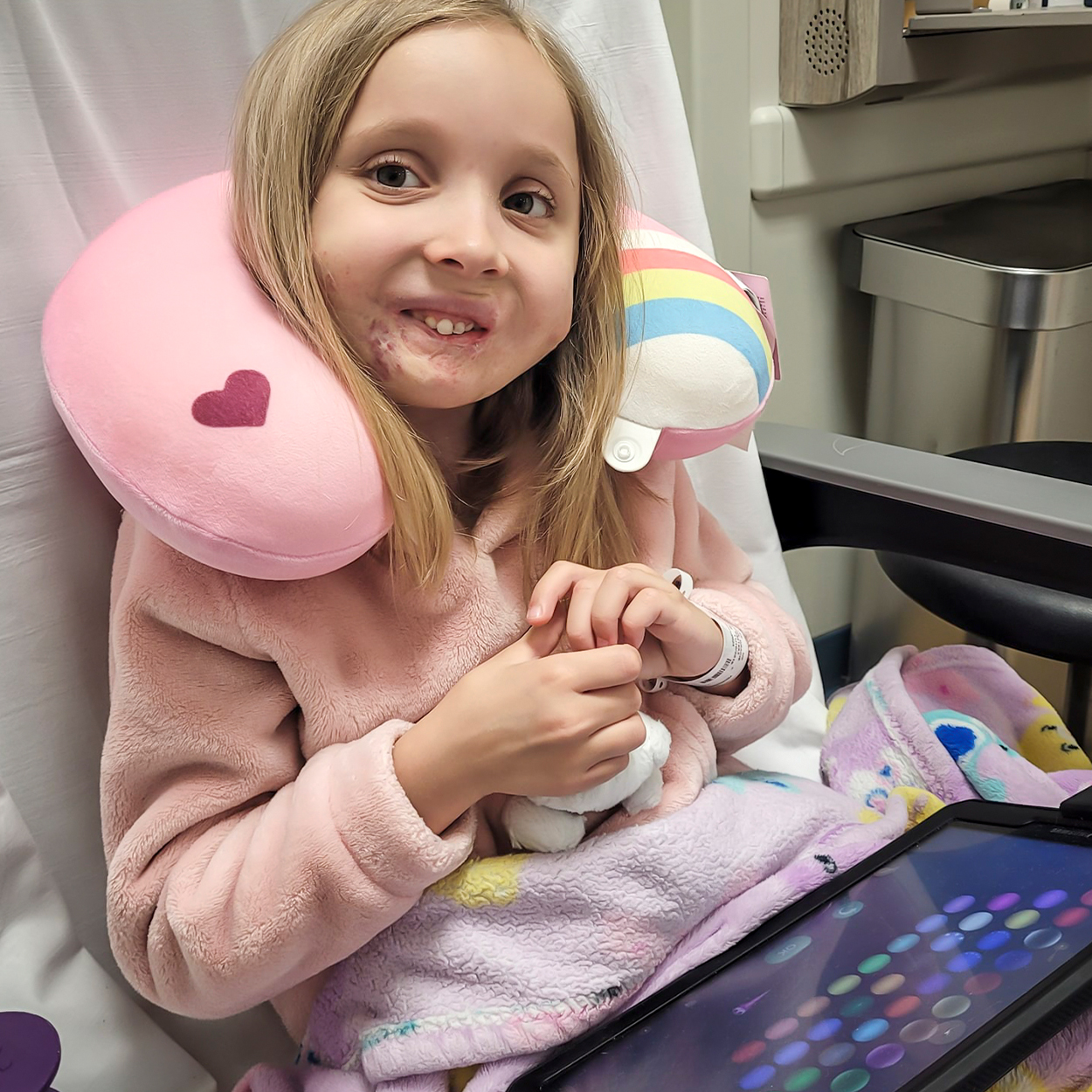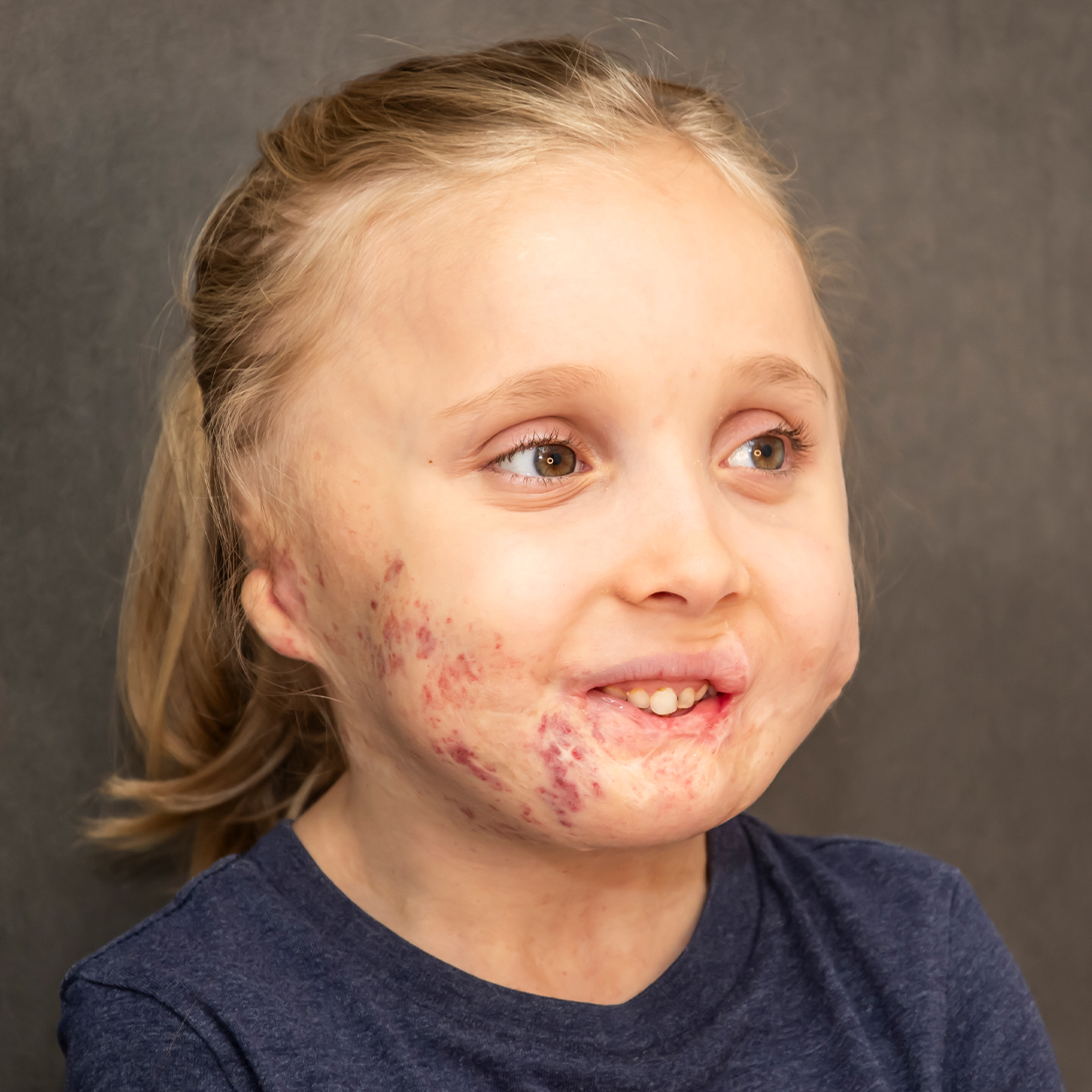 We’ll be welcoming Gracie back for her 10th visit at the Little Baby Face Foundation, and to say we’re excited would be an understatement. If you’ve been following along with Gracie’s story, you’ll know how much joy and laughter she brings to our offices. She’s so full of life, even when she is in recovery mode from her treatments! At her last visit with us in August of 2024, her progress and treatment plan was reevaluated. Dr. Waner confirmed that Gracie still needs some bulk to her lower lip, which will be accomplished by a surgery called an island flap. This involves sewing the upper lip to the lower lip, where it will stay attached for 8 days until it has established a blood supply. Then, we will cut the lips apart again, but higher up, giving her some bulk on the lower lip. We are essentially taking some of her upper lip in order to build her lower lip. During the 8-day period where her mouth is partially sewn shut, Gracie will be nourished through a G-tube. She’s quite a tough cookie and is ready and willing to face this treatment in order to improve her health. Right now, she is dealing with drooling and trouble opening her mouth wide enough for a large spoon, for example, so she’s motivated—and brave—enough to undergo treatment. Dr. Romo will also be performing an ear reconstruction surgery eventually, but the priority right now is her mouth surgery as this is the most urgent. Gracie will also continue her laser treatments to address the marks of her ulcerated hemangioma.