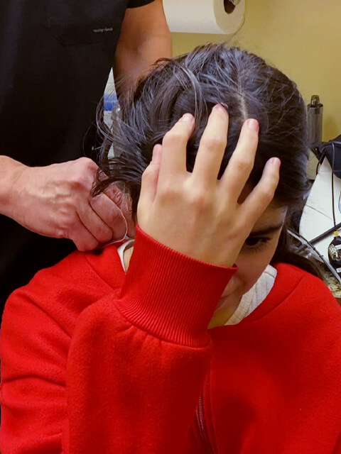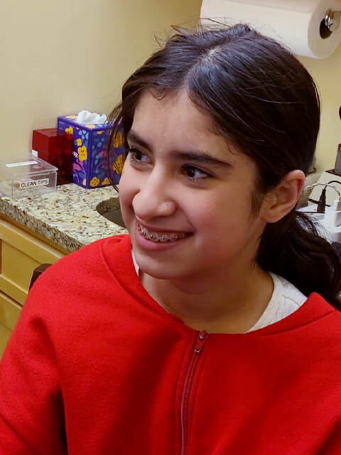 When Anisa’s ear had healed from her second surgery, it was time to turn on the BAHA—the moment we’ve all been waiting for. Our audiologist, Dr. Phillip Vazquez, helped Anisa understand the functionality of her BAHA, from the accessories to the app that will allow her to adjust the sound settings. You can read all about how a BAHA works here. Anisa was all smiles as she learned how to work her BAHA. Her mom was thrilled. This was really a dream come true for their family. After a check-in with Dr. Kohan, Anisa was able to head home.