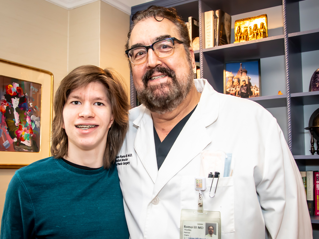 “I was going through a lot at the time—depression—and it had a lot to do with my facial deformity, and I really wanted to get that checked out, but I really didn’t want to go to my parents for it at first,” Dylan explained to us at his first visit. He found articles about the Little Baby Face Foundation and applied by himself online. When we called to say he was accepted for treatment, it was the first his family had heard of it. Dylan’s family was supportive of him getting the help he needed. Debbie, his “Nana,” attended his first appointment with him in New York City, and his mother, Nikki, was present for his treatments.